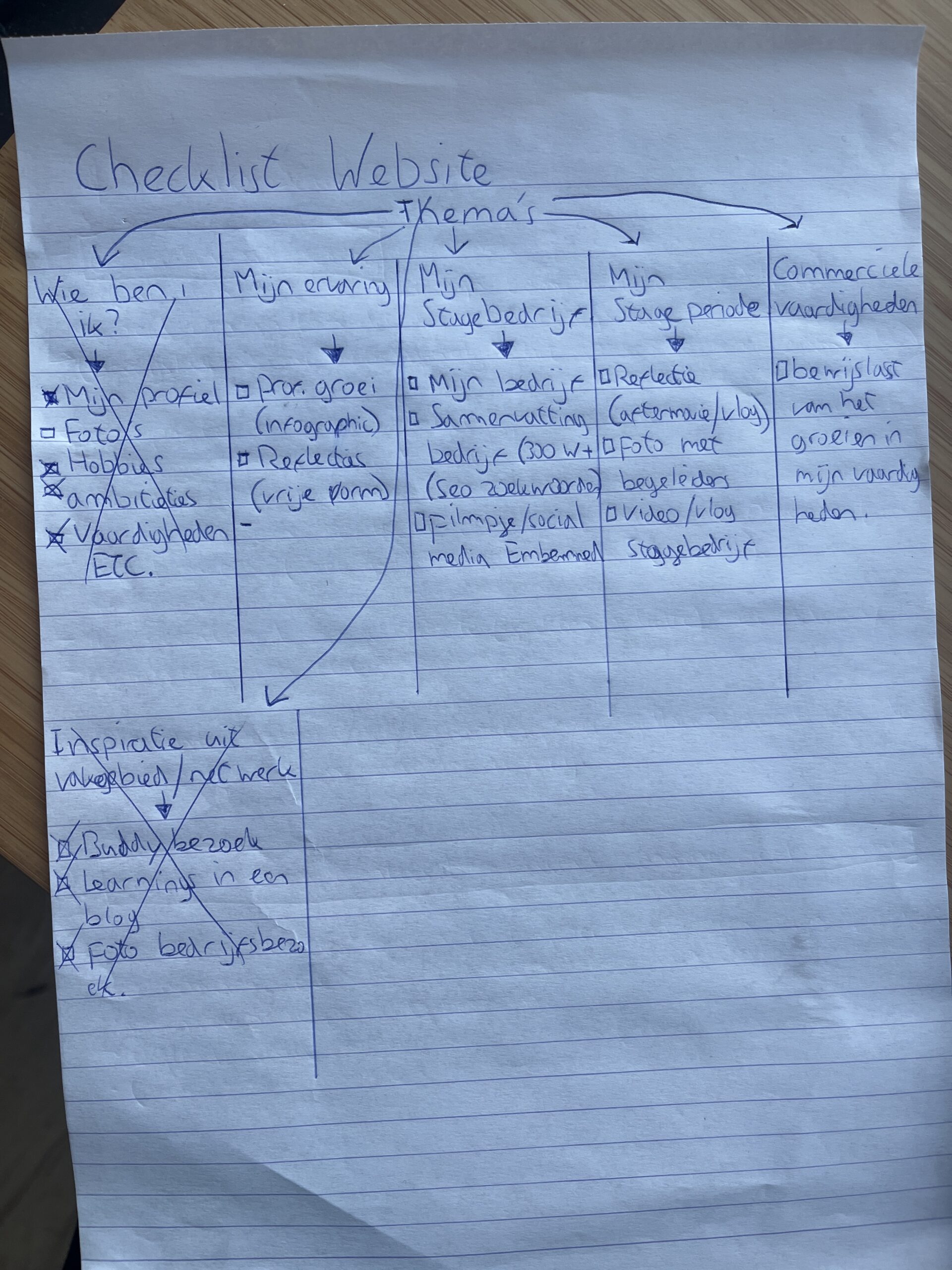 Ik heb deze gemaakt voordat ik mijn website ging bouwen, zodat ik een duidelijk beeld kreeg van hoe alles ongeveer zou komen te staan en hoe bezoekers door de site zouden navigeren. Zo kon ik alles goed plannen en overzichtelijk houden voordat ik begon met bouwen.